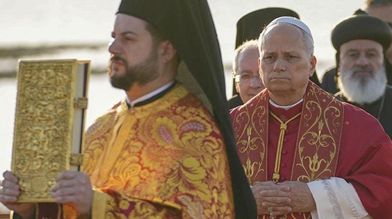 İki farklı mezhebin temsilcisi din adamları ayinde bir araya gelirken, Katolik olan Papa 14’'ncü Leo ile İstanbul Ortodoks Patrikhanesi Patriği ve İstanbul Başpiskoposu olarak görev yapan Bartholomeos yan yana dua etti.