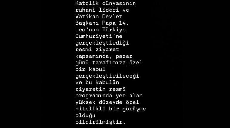 Vatikan Devlet Başkanı Papa 14. Leo, Harbiye'de yer alan Kutsal Ruh Katolik Kilisesi'nde (Saint Esprit Katedrali) piskopos, rahip, diyakoz ve ruhani görevlilerle bir araya gelerek hitapta bulundu.