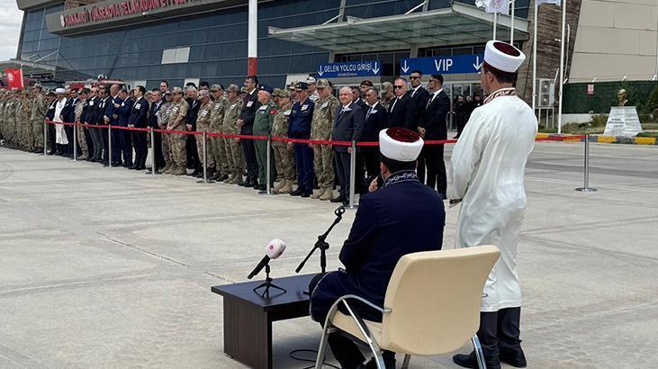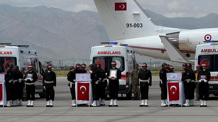Yüksekova Selahaddin Eyyubi Havalimanı'nda düzenlenen törende şehit İstihkam Üsteğmen Ege Akar, Mühimmat Astsubay Kıdemli Çavuş Abdurrahman Akdoğan, piyade sözleşmeli erler Ahmet Kuşak, Özkan Özkanlı, Ahmet Gültekin ve Mahsun Yeşildemir'in Türk bayraklarına sarılı naaşları alana getirildi.