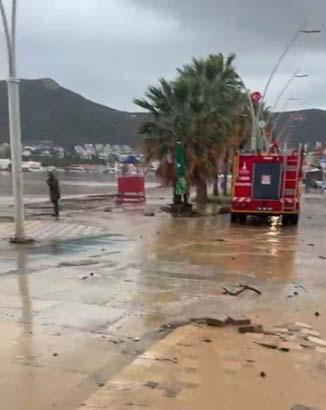 İzmir'de sağanağın etkili olduğu yerlerden biri ise Karaburun ilçesi oldu. Karaburun'un kırsal Saip Mahallesi'nde yağışla birlikte dereler taştı. Sel nedeniyle cadde ve sokaklar suyla doldu. O anlar dronla görüntülendi.