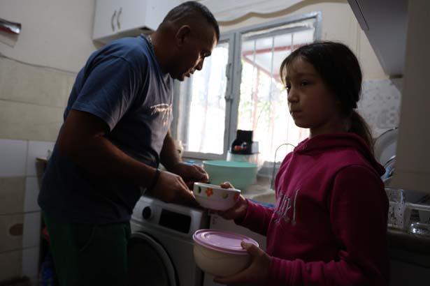 “Babamı çok seviyorum. Okuldan geldikten sonra babamız yemek yapıyor, sobayı yakıyor. Sevdiğimiz yemekleri yapıyor. Mesela ben kuru fasulye ve pilavı seviyorum. Çok güzel yapıyor. Her yemeği yapıyor benim babam.”