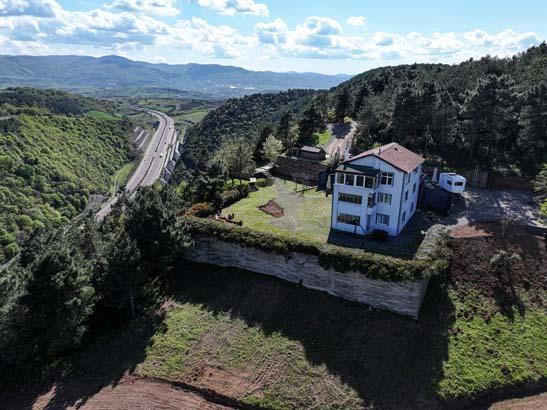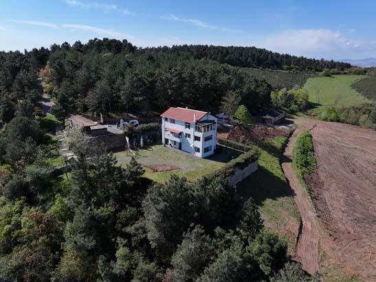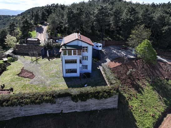 Köye yakın bir bölgede ormanlık alanın zirvesinde bulunan 125 metrekare alana sahip 9 odalı ev, konumuyla ilgi görüyor.
