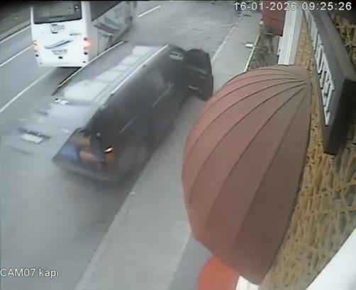 Minibüste bulunan yolcular kazadan yara almadan kurtulurken, araç kullanılamaz hale geldi. Kaza anı ise güvenlik kamerasına saniye saniye yansıdı.
