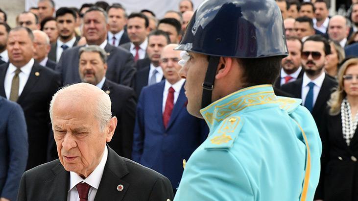 Bahçeli ardından TBMM’deki Atatürk Anıtı’nı ziyaret etti. Buradaki törene milletvekilleri ve TBMM çalışanları da katıldı.