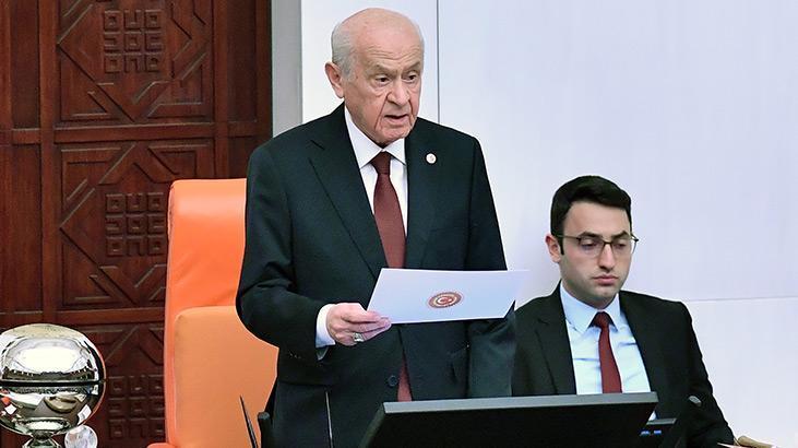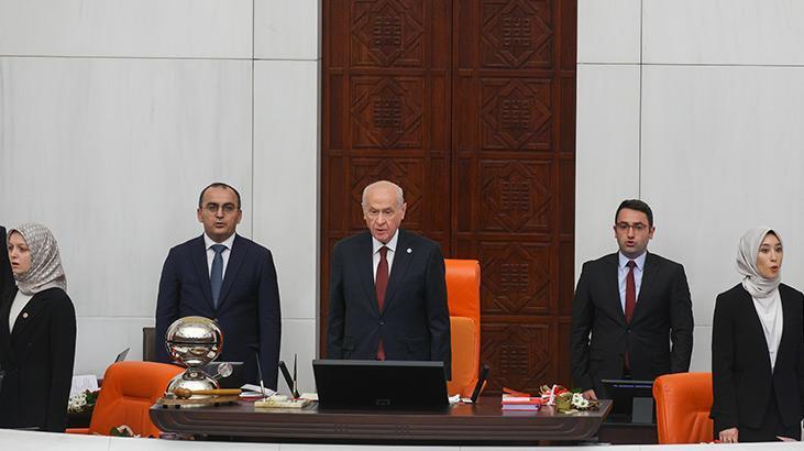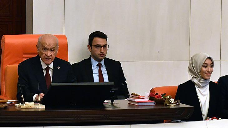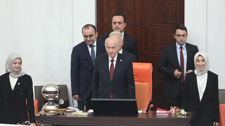 MHP lideri Devlet Bahçeli, açılış konuşmasının ardından yemin eden ilk isim oldu. Divan kürsüsünde ayakta yemin eden Bahçeli, “Türkiye Cumhuriyeti’nin temel harcı hiç kuşku yoktur ki Türk milletinin irade ve istiklal özlemiyle karılmıştır. Gazi Mustafa Kemal Atatürk, 1 Mart 1923’te, TBMM’nin 1. Dönem açılış konuşmasında aynen şöyle demişti: ‘Millet önünde, onun hak ettiği bağımsızlığın önünde, onun layık olduğu gelişme ve yenilenme arzusu önünde, her kuvvet ancak milletin irade ve amaçlarına uymak şartıyla yaşayabilir. Milletin irade ve amaçlarına uymayanların talihi hüsrandır, çökmedir.’