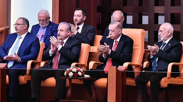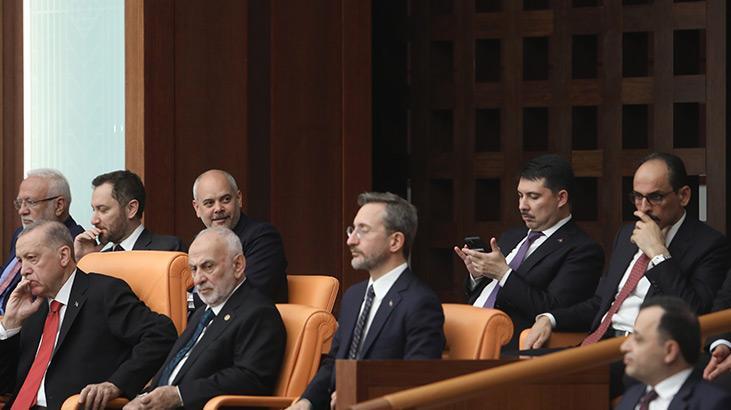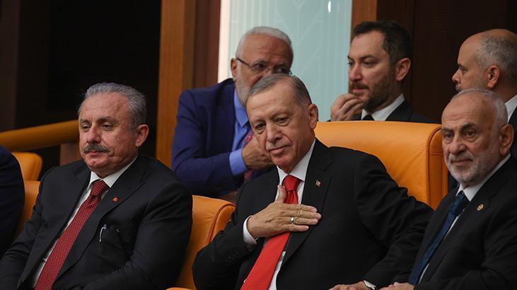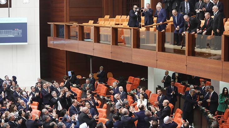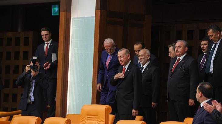 Cumhurbaşkanı Erdoğan, Genel Kurul açılmadan önce locada yerini aldı. AK Partili vekiller Erdoğan’ı ayakta alkışlarken, CHP, Yeşil Sol ve İYİ Parti grupları ayağa kalkmadı, alkışlamadı. Bahçeli’nin açılış konuşması öncesi Erdoğan’ı anons etmesi üzerine de yine sadece AK Parti ve MHP milletvekillerinden ayakta coşkulu alkışlar geldi. Erdoğan ise elini göğsüne götürerek ve başıyla salonu selamladı. Erdoğan locaya geldiğinde Kılıçdaroğlu ve CHP Grup Başkanvekili Özgür Özel de ayağa kalkmadı.
