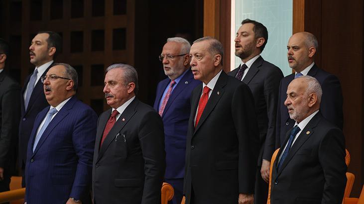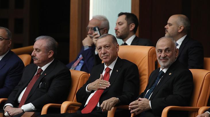 Erdoğan’a Şeref Locası’nda Şentop ve Geçici Meclis Başkanvekili Yeniden Refah Partisi Milletvekili Suat Pamukçu eşlik etti.
