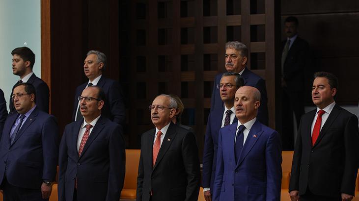 Kılıçdaroğlu ve Babacan, salonda yüksek yargı mensuplarının bulunduğu locada otururken, Karamollaoğlu ise basın locasının arkasında seçime katılan partilerin genel başkanlarına ayrılan bölümde eski milletvekilleriyle birlikte töreni izledi.