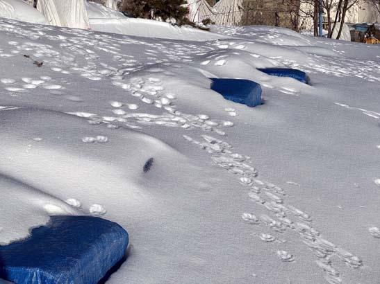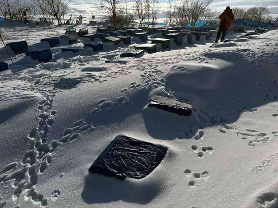 Çetin kış şartlarının yaşandığı bölgede, kara gömülen kovanlara ulaşmak da zor oluyor. Kara gömülen kovanların üstünde dolaşan hayvanların ayak izleri de dikkati çekiyor.