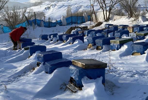 Bu arılı kovanların yaklaşık yüzde 10'u da kar altında kışı geçiriyor. Merkeze bağlı Çataldere köyünün muhtarı Necdet Bilgin de arılarını kar altında kışlatan arıcılardan biri.