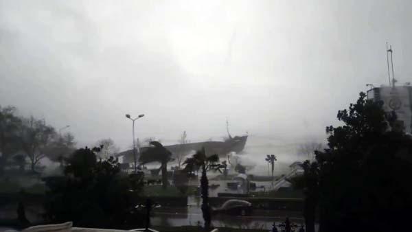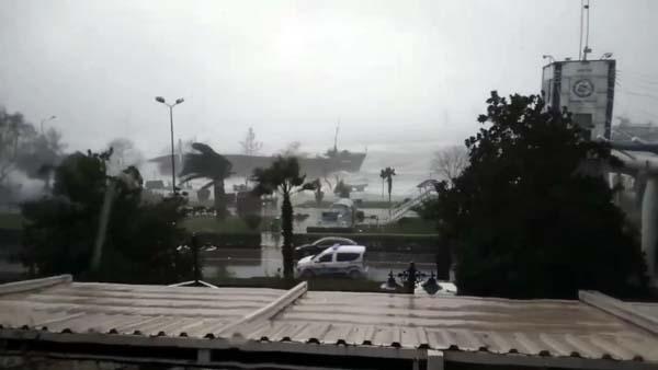 Öte yandan Zonguldak’ta uyarıları yapılan fırtına ve sağanak etkisini gösterdi. Kentte ağaçlar devrilirken, yollarda su birikintileri oluştu. Araçların üstüne, evlerin çatılarından kiremitler ve beton parçaları düştü. Ereğli ilçesinde etkili olan fırtına nedeniyle limanda 5 metreyi bulan dalgalar meydana geldi. Ereğli ilçesinde de bir ağacın araçların üstüne devrildiği an cep telefonu kamerasıyla kaydedildi.
