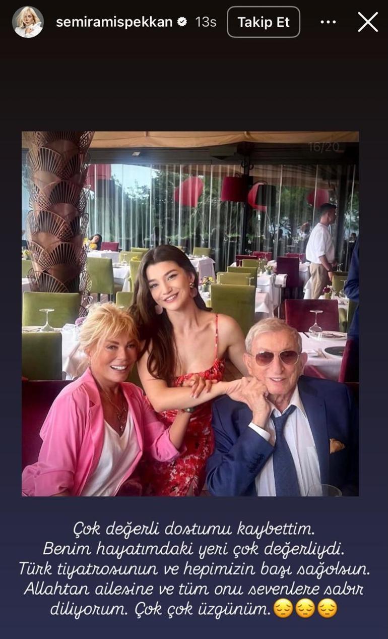"Çok değerli dostumu kaybettim. Benim hayatımdaki yeri çok değerliydi. Türk tiyatrosunun ve hepimizin başı sağ olsun. Allahtan ailesine ve tüm onu sevenlere sabır diliyorum. Çok çok üzgünüm."