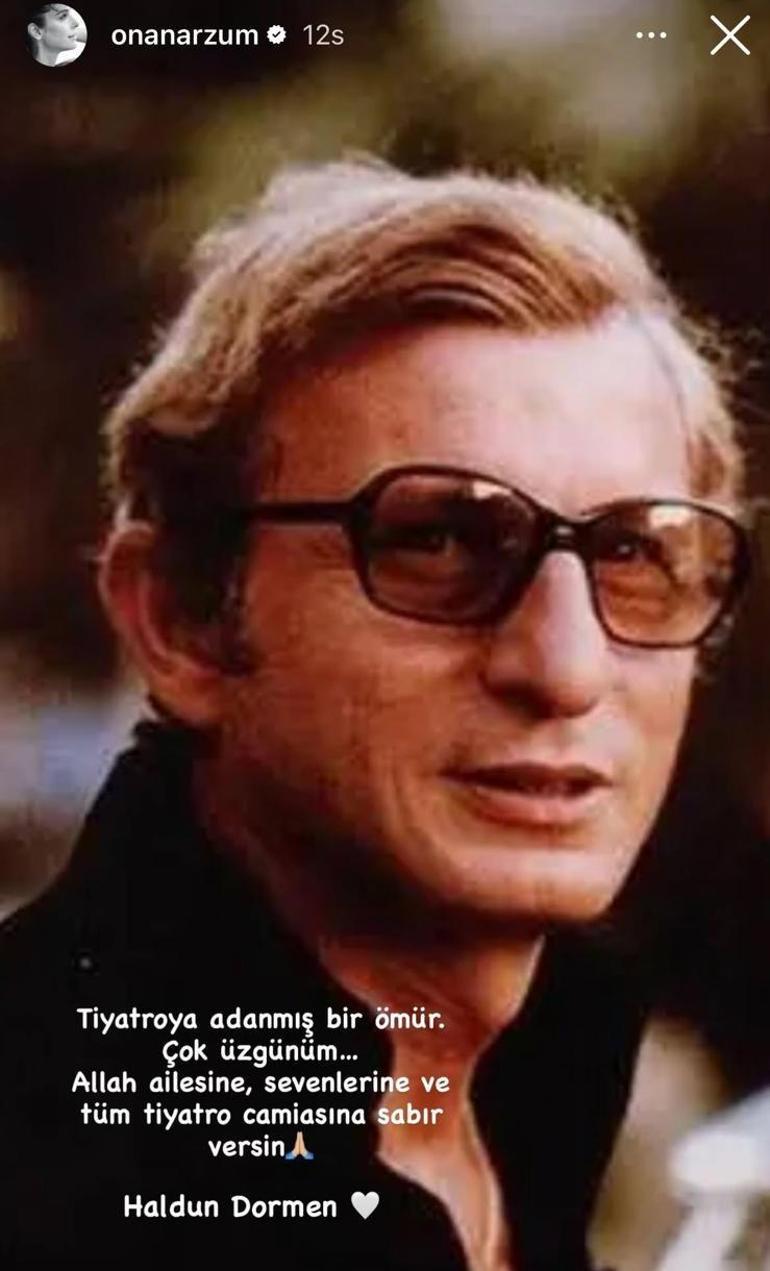 ''Usta Sanatçı Haldun Dormen'i kaybettik. Tüm sevenlerinin, öğrencilerinin ve tiyatro camiasının başı sağ olsun. Işıklar içinde uyusun"