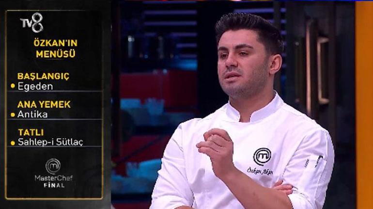 Özkan Midye pilaki ile başlayıp ana yemekte kuzu ve lahana sarma yapacağını söyledi. En sonunda da tatlı olarak sütlacı dondurma gibi servis edeceğini söyleyen Özkan "sahlepi de sufle olarak vereceğim" dedi.