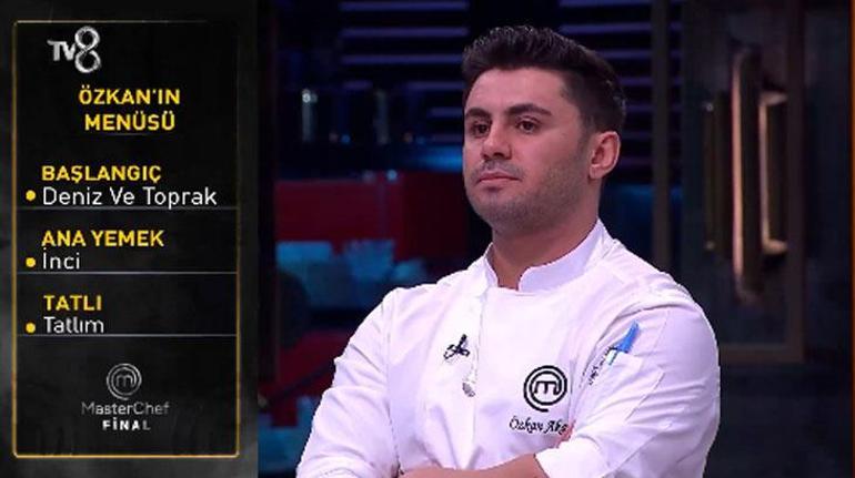 Özkan hazırlayacağı uluslararası menüde deniz mahsulleri ve topraktan yola çıktığını söyledi. Özkan, garnitür olarak fava ve pastırma kullanacak yanında ise karides olacak. Ana yemek inci. içerisinde tarak levrekle birleşecek. En sonda da yorumladığı tatlısı olacak.