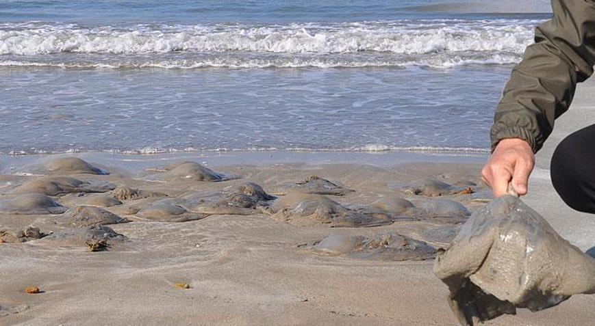 "Kızıldeniz'den gelen, Mersin Körfezi ve Doğu Akdeniz'de baskın hale gelen bir tür. Bunlar planktonlarla beslendikleri için denizde özellikle bol besin bulduklarında sayılarını, biyokütlelerini arttırıyorlar. Burada son 10 yıldır özellikle şubat-nisan aylarında yoğun şekilde kıyıya vurmalarına rastlıyoruz. Bu dönemde yoğun hava şartlarından kaynaklı özellikle dalgalar, akıntılar ve fırtına sonrasında artık kıyılarda görülmesi rutin haline geldi."