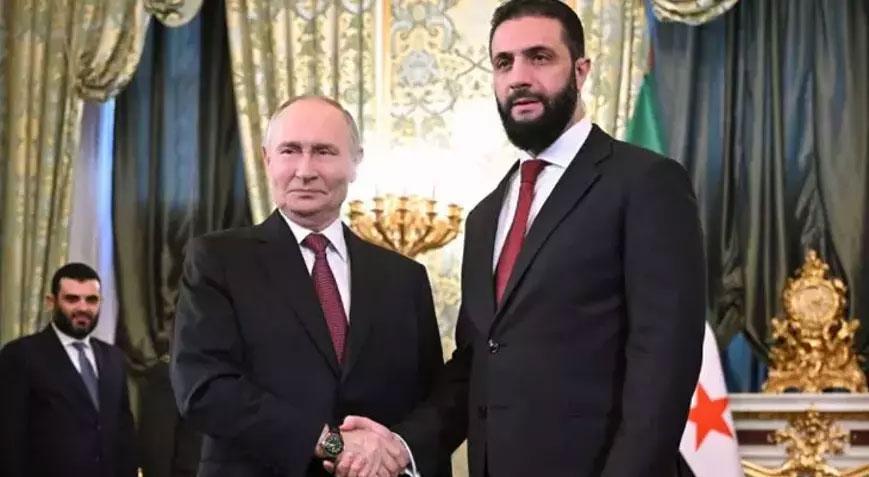 Görüşmenin basına açık kısmında konuşan Putin, eş-Şara’yı Moskova’da ağırlamaktan memnuniyet duyduğunu söyledi. On yıllar boyunca iki ülke arasında özel bir ilişki geliştirildiğini kaydeden Rus lider, "Rusya ve Sovyetler Birliği için en zorlu dönem olan 1944 yılında kurulan diplomatik ilişkilerimizi 80 yılı aşkın bir süredir sürdürmekteyiz. Bu süreçte Suriye ve Rusya ilişkileri her zaman dostane olmuştur. Rusya olarak Suriye ile hiçbir zaman siyasi koşullarımıza veya özel çıkarlarımıza bağlı ilişkiler kurmadık. On yıllar boyunca her Suriye halkının çıkarları rehberliğinde hareket ettik" dedi.