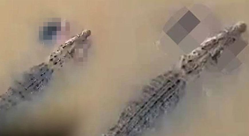 Ancak, timsahın ağzından kadını kurtarmak için gösterilen tüm çabalar yetersiz kaldı. Dehşet anları ise ise köylülerin çığlıkları eşliğinde kaydedildi.