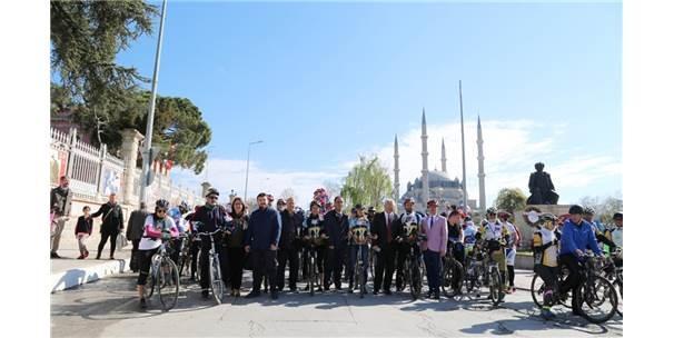 ‘Mimar Sinan Bisiklet Turu’ kapsamında bisiklet tutkunları Selimiye Camii önünden Edirne Belediyesi Protokol Evi’ne kadar pedal çevirdi.