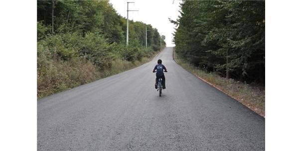 Kocaeli Büyükşehir Belediyesi ekiplerince yapılan çalışmalarla yenilenen köy yolları, köy çocuklarının bisiklet sürme alanı haline geldi.